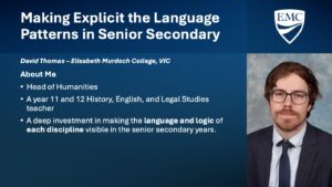David Thomas (Elisabeth Murdoch College) presented at the History Teachers’ Association of Victoria Conference, advocating for an explicit approach to teaching the language and literacy of History, using Lexis Education’s 3L as a pedagogical framework.